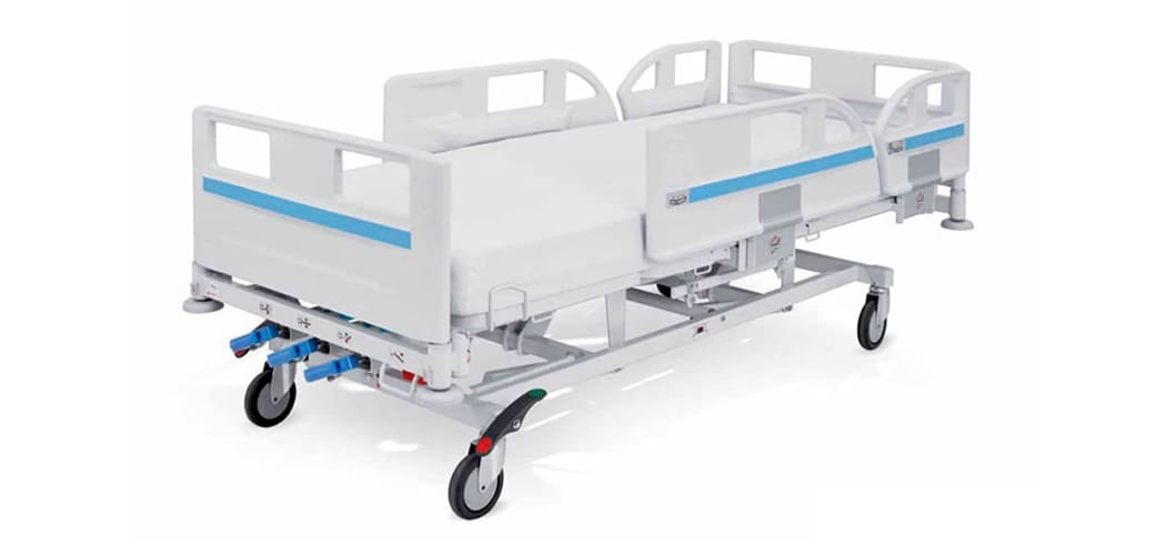 Uma cama elétrica totalmente ajustável. A cama hospitalar Eleganza 1 é projetada para enfermarias hospitalares padrões e unidades de tratamento intensivo prolongado. A cama tem uma construção simples com uma ampla gama de recursos citados acima e funções sofisticadas de baixo custo, oferecendo assim aos clientes ótimo custo-benefício.